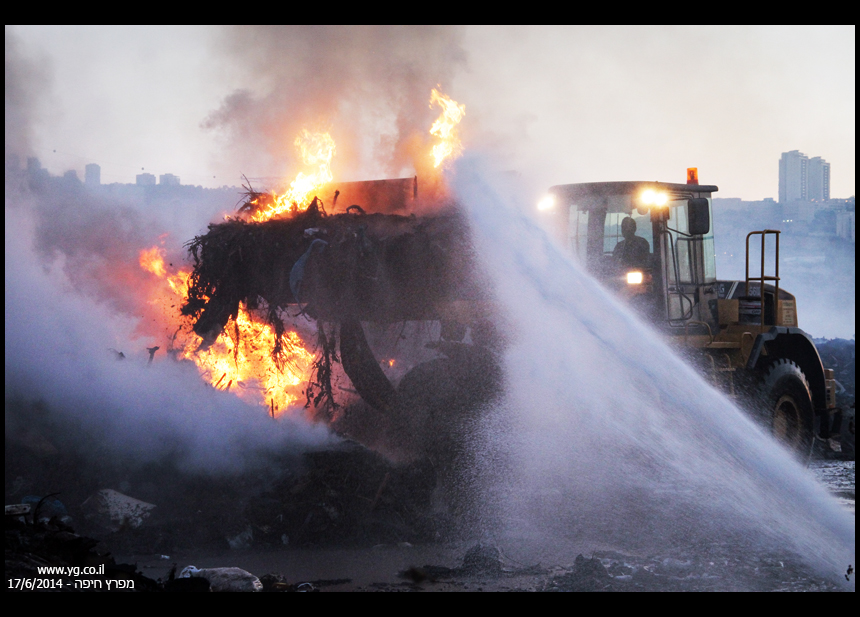 חיפה: שריפת מערומי פסולת וגזם בסמוך למכון לטיהור שפכים חי-פה 15.6.2014