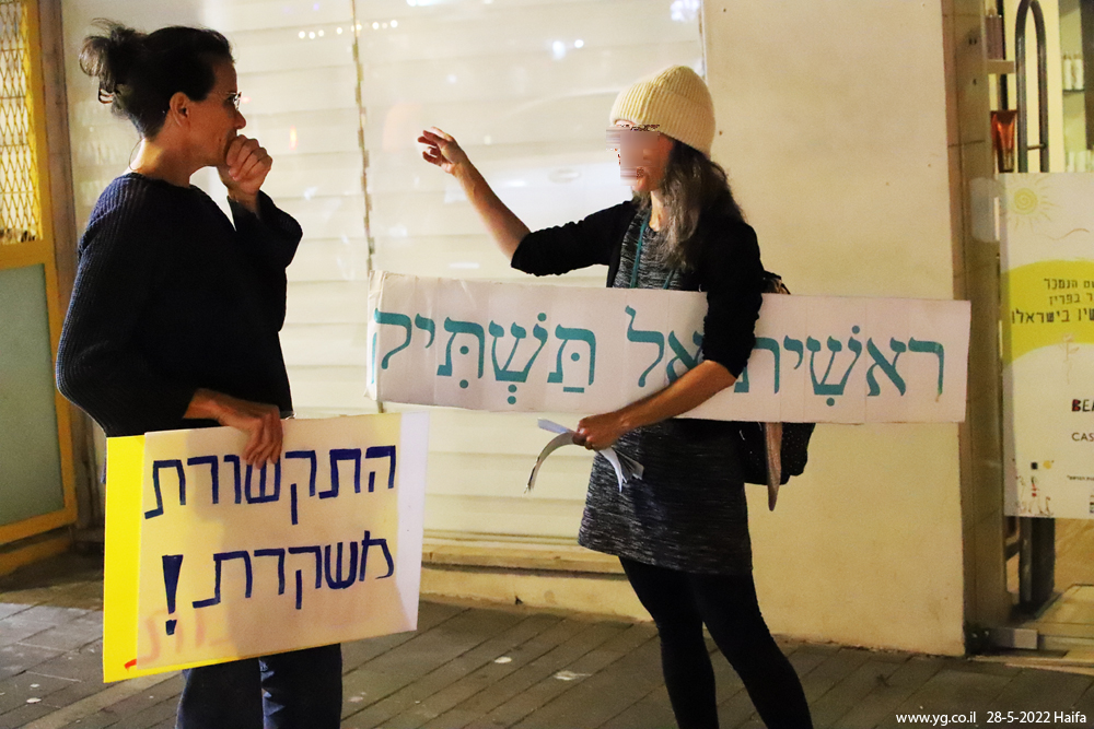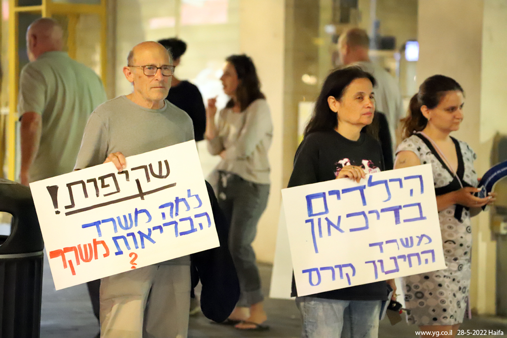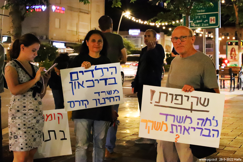 מחאה נגד אי-חשיפת הסכמי ממשלת ישראל עם חברת פייזר בנושא חיסוני הקורונה, וכנגד כפייתם על הציבור. במקביל, למחאה הזו היו שם גם מסרים אחרים, כמו 'התקשורת משקרת', ועל כך שהוצבו מצלמות רבות במרחב הציבורי, וזאת עם טכנולוגיות זיהוי מתקדמות. בנוסף, משתתפי האירוע מחו על אי קיום הבטחות מתקופת הבחירות כמו הגבלת כהונת ראש מתיחת ממשלה, ועל אי-פתיחת חקירה ממלכתית בנושא פרשת הצוללת. מוצ"ש 28.5.2022, מרכז הכרמל, חיפה.