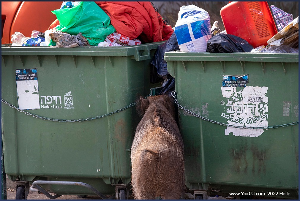 אפשר לזהות סימטריות בארכיטקטורה, וזה קרוב לגיאומטריה והנדסה, וקשור ביצירה של מעצב. בצילום החיפוש הוא אחר סימטריה שנוצרת לרגע, או כזו שממשיכה סימטריה מקומית שבמילא קיימת אבל נכנס אליה משהו חדש, למשל חזיר בר בין פחי אשפה. כמו כאן.