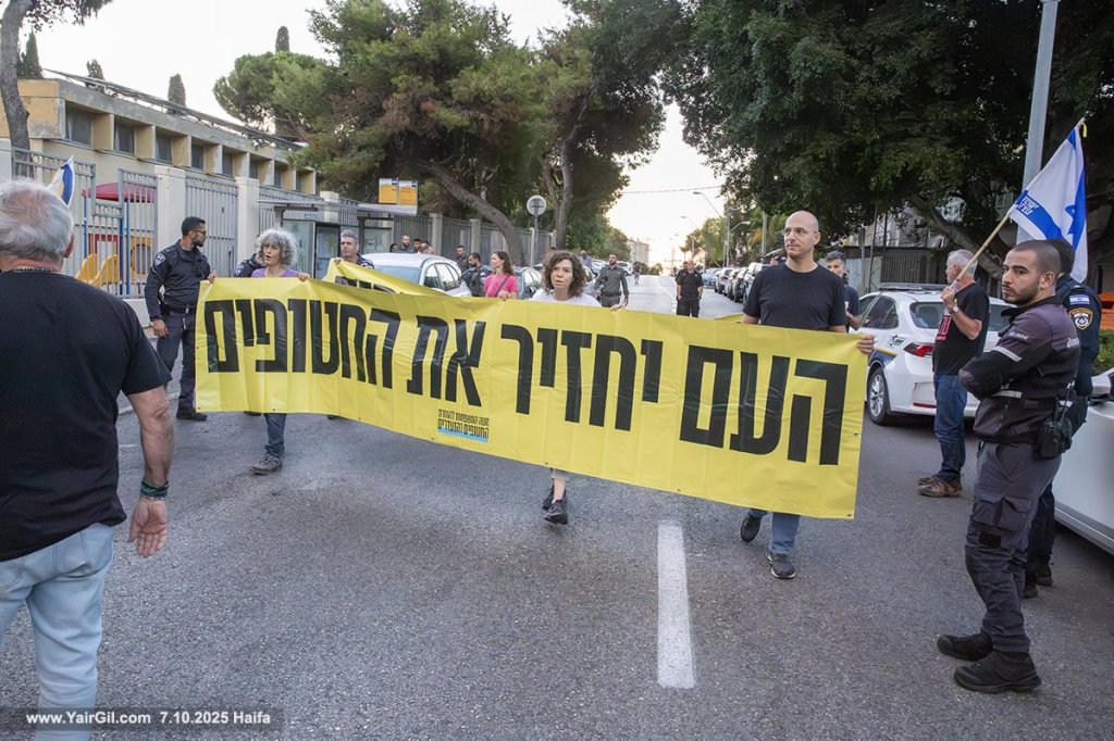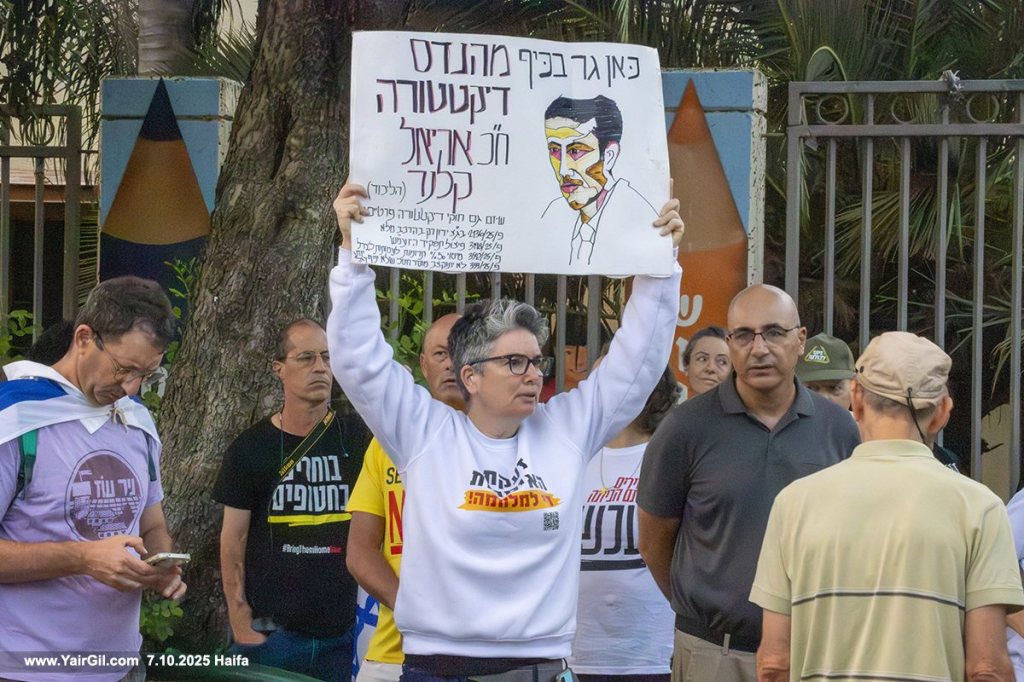שש עשרים ותשע בבוקר, מחאה במלאת שנתיים למלחמת השיבעה באוקטובר סמוך לבית חבר הכנסת אריאל קלנר מהליכוד. המשטרה לא נתנה להתקרב ובכל זאת קבוצת מפגינים הצליחה להסתנן, להניף שלטים מול ביתו ולכרוז את שמות החטופים. הצילומים מאזור כיכר ד"ר אלי נחמיאס, סמוך לבית הספר הממלכתי "תל חי".