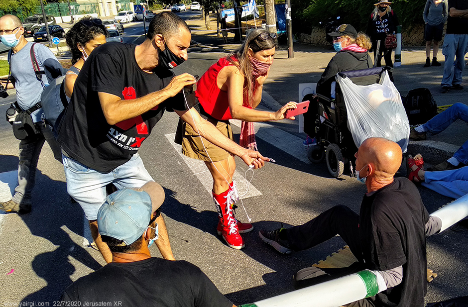 פעולת מחאה וחסימת הכניסות לכנסת, במחאה על הכוונה להעביר את חוק הקורונה המורחב, הבוקר 22.7.2020 בירושלים. עשרות חסמו את שלוש הכניסות לכנסת בחלקם אף כבלו ידיהם זה לזה בתוך צינורות, וכל זאת עקב החוק שיקנה לממשלה סמכויות חירום נרחבות ואשר צפוי לעלות להצבעה שניה ושלישית היום.פעולת מחאה וחסימת הכניסות לכנסת, במחאה על הכוונה להעביר את חוק הקורונה המורחב, הבוקר 22.7.2020 בירושלים. פעולת מחאה וחסימת הכניסות לכנסת, במחאה על הכוונה להעביר את חוק הקורונה המורחב, הבוקר 22.7.2020 בירושלים. פעולת מחאה וחסימת הכניסות לכנסת, במחאה על הכוונה להעביר את חוק הקורונה המורחב, הבוקר 22.7.2020 בירושלים. פעולת מחאה וחסימת הכניסות לכנסת, במחאה על הכוונה להעביר את חוק הקורונה המורחב, הבוקר 22.7.2020 בירושלים. פעולת מחאה וחסימת הכניסות לכנסת, במחאה על הכוונה להעביר את חוק הקורונה המורחב, הבוקר 22.7.2020 בירושלים.פעולת מחאה וחסימת הכניסות לכנסת, במחאה על הכוונה להעביר את חוק הקורונה המורחב, הבוקר 22.7.2020 בירושלים. עשרות חסמו את שלוש הכניסות לכנסת פעולת מחאה וחסימת הכניסות לכנסת, במחאה על הכוונה להעביר את חוק הקורונה המורחב, הבוקר 22.7.2020 בירושלים. עשרות חסמו את שלוש הכניסות לכנסת בחלקם אף כבלו ידיהם זה לזה בתוך צינורות, וכל זאת עקב החוק שיקנה לממשלה סמכויות חירום נרחבות ואשר צפוי לעלות להצבעה שניה ושלישית היום. בתמונה, מגבני"קים מעל לשרועים על הכביש.פעולת מחאה וחסימת הכניסות לכנסת, במחאה על הכוונה להעביר את חוק הקורונה המורחב, הבוקר 22.7.2020 בירושלים. פעולת מחאה וחסימת הכניסות לכנסת, במחאה על הכוונה להעביר את חוק הקורונה המורחב, הבוקר 22.7.2020 בירושלים. פעולת מחאה וחסימת הכניסות לכנסת, במחאה על הכוונה להעביר את חוק הקורונה המורחב, הבוקר 22.7.2020 בירושלים. מימין בצילום: סדי בן שטריתהביאו קאטר, "תוכי" לחתוך את השרשראות. לא עזרהביאו "תוכי" שני, יותר גדול. לא הצליח לחתוך את השרשרת.כוחת הכיבוי מפצחים את שרשראות הברזל. שוטר אחד עם מצלמת גוף מצלם גם בטלפון את התהליך בעוד קצין המשטרה הבכיר נצ"מ יעקובי מתחנת מוריה, צופה במתרחש ממרחק קצר.
