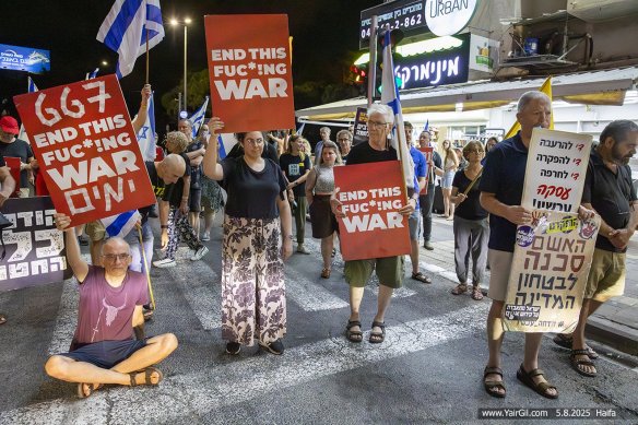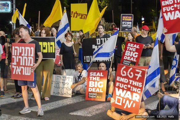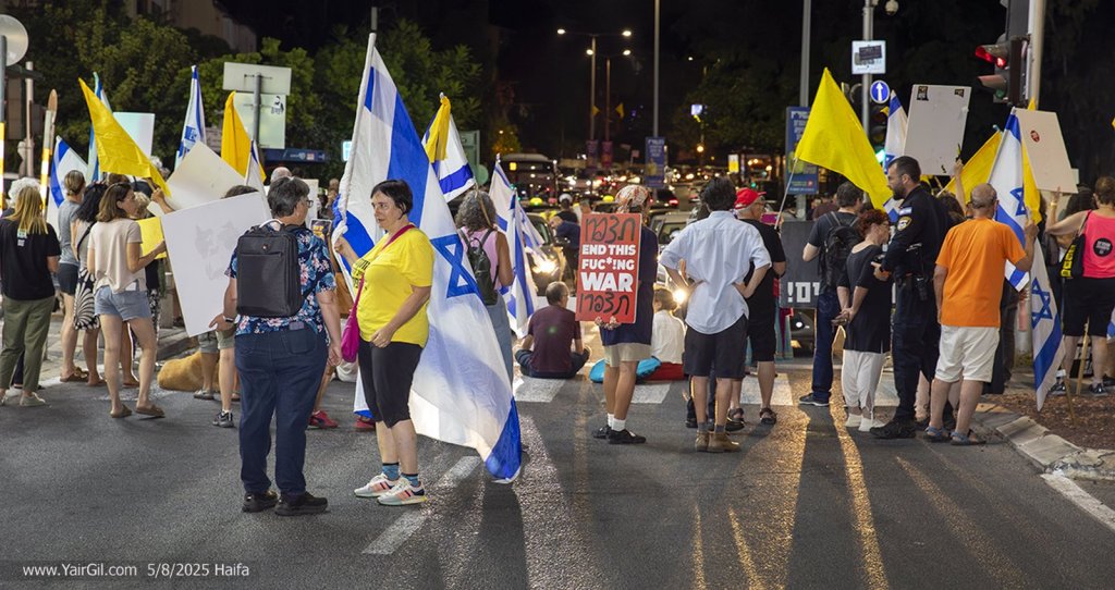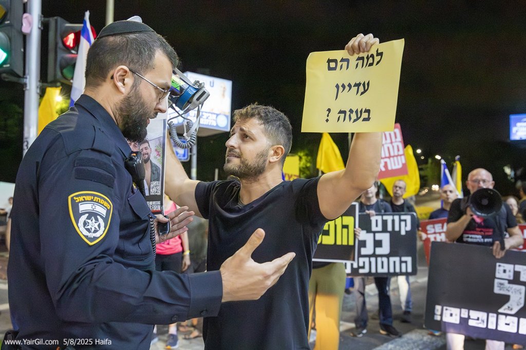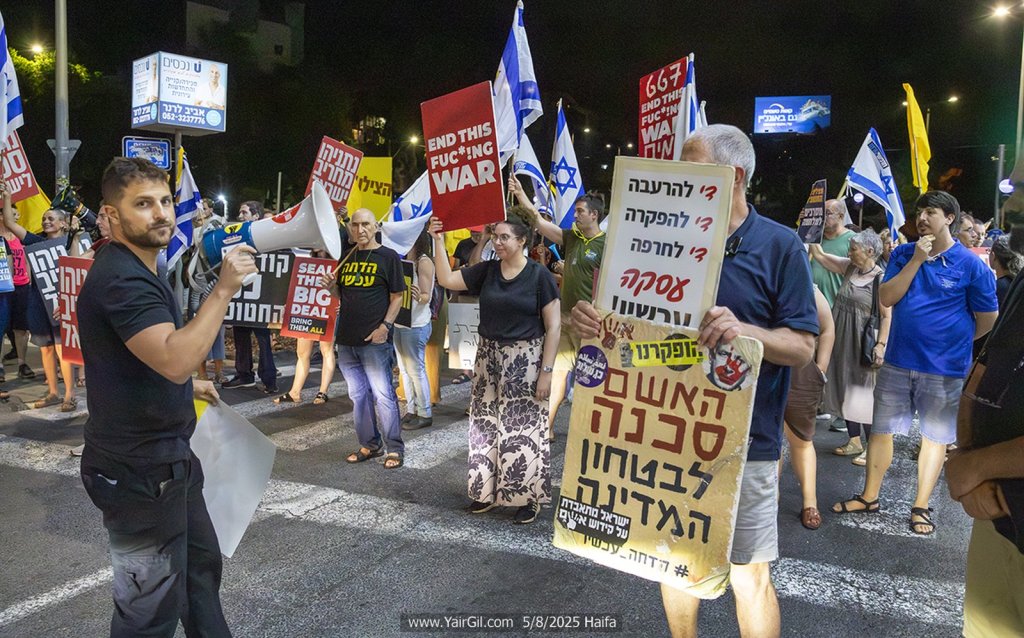 הפגנה חיפאית בהתרעה קצרה: 10:30 בלילה, עקב החלטות ממשלה הרות גורל וחוסר היכולת לשחרר את החטופים מכלאם בעזה