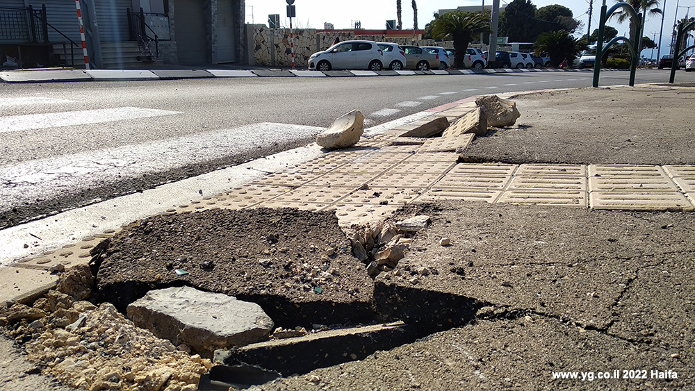 מקווה מים נוצר באמצע גן מניה שוחט בחיפה כתוצאה מבעייה בצנרת שמתחת לדשא. חזירי הבר הגיעו לשתות ולשכשך. מתי יתקנו? בהמשך.עגלת סופרמרקט הפוכה כזבל ברשות הרבים. את הגלגליפ פירקו; גם את הידית. איפה גנבי הברזל כשצריך אותם?שתי חלות בשקית צהובה על ספסל בגן הזיכרון, ממש מול העירייה. מי שכח אותן? האמנם נשכחו? למי נועדו? חזירי הבר החיפאים שכבר שוטטו כאן ימצאו את החלות במהרה. שקיות זבל ואשפה במערום על שפת הים בחיפה. אוקטובר 2022פסולת פלסטיק על חוף הים של חיפה – אוקטובר 2022כדוריות קלקר על חוף הים של חיפה 30.9.2022 Styrofoam on the Haifa Beachכדוריות קלקר על חוף הים של חיפה 30.9.2022 Styrofoam on the Beach of Haifa דוגמא למפגע סביבתי עירוני. בורות קטנים גושי אספלט ובטון על מדרכה סמוך למעבר חציה ללא כל סימון ואזהרה הם מפגע בשטח עירוני