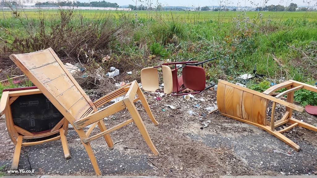 ריהוט שבור בפאתי שדה שבין גבול קריית ביאליק וכפר ביאליק 2024מבט לשדות כפר ביאליק דרך ערימת אשפה בקריית ביאליק. ינואר 2024