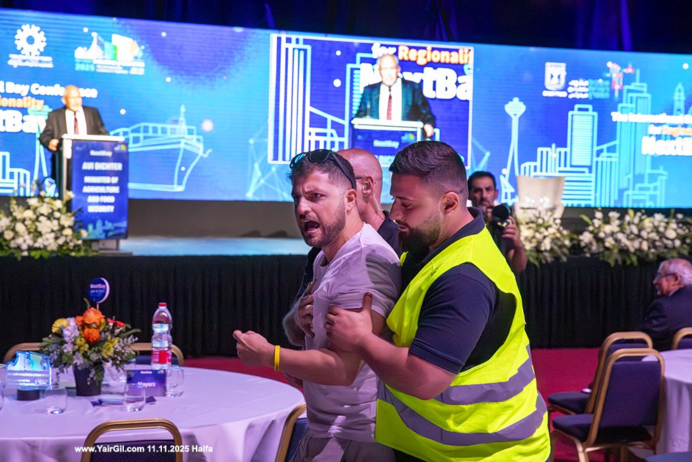 -ועידת המפרץ הבינלאומית לאזוריות – השר אבי דיכטר -מרכז הקונגרסים בחיפה 11.11.2025ועידת המפרץ הבינלאומית לאזוריות 2025, חיפה 11.11.2025 – מחאה מול שר החקלאות וביטחון המזון אבי דיכטר