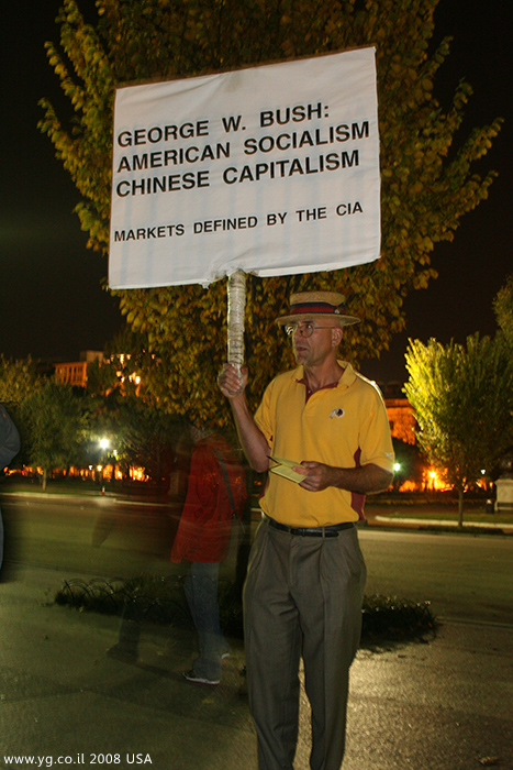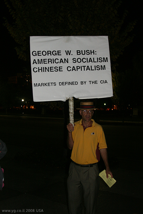 מפגין בודד בצילום רגיל עם פלאש. הרקע כהה ולא רואים פרטים כמו בצילום שמעליו.