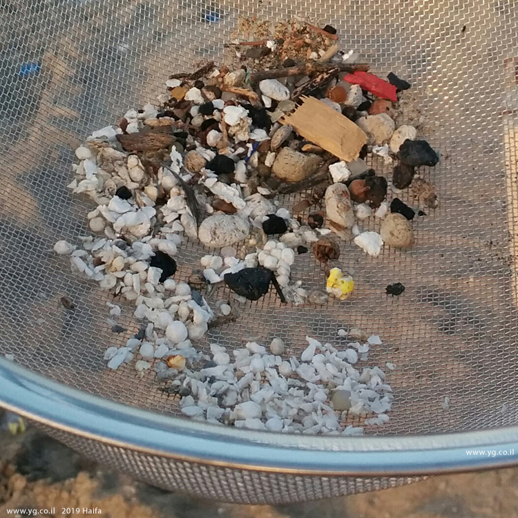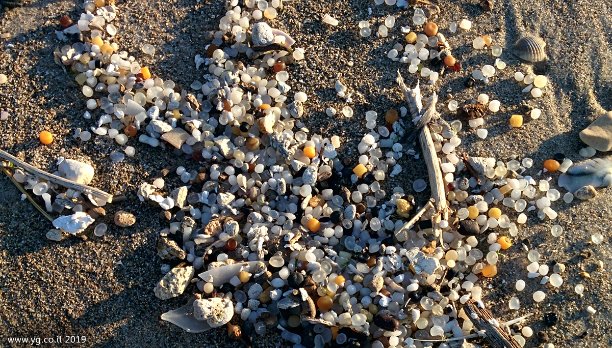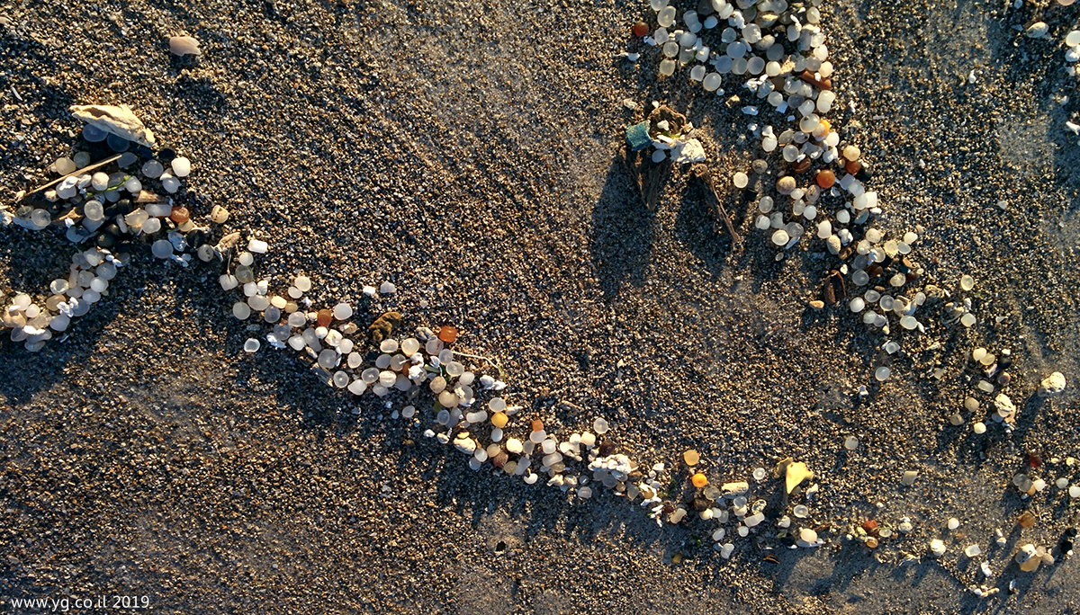 plastic pellets. Coast of Haifa 2019, Israel
