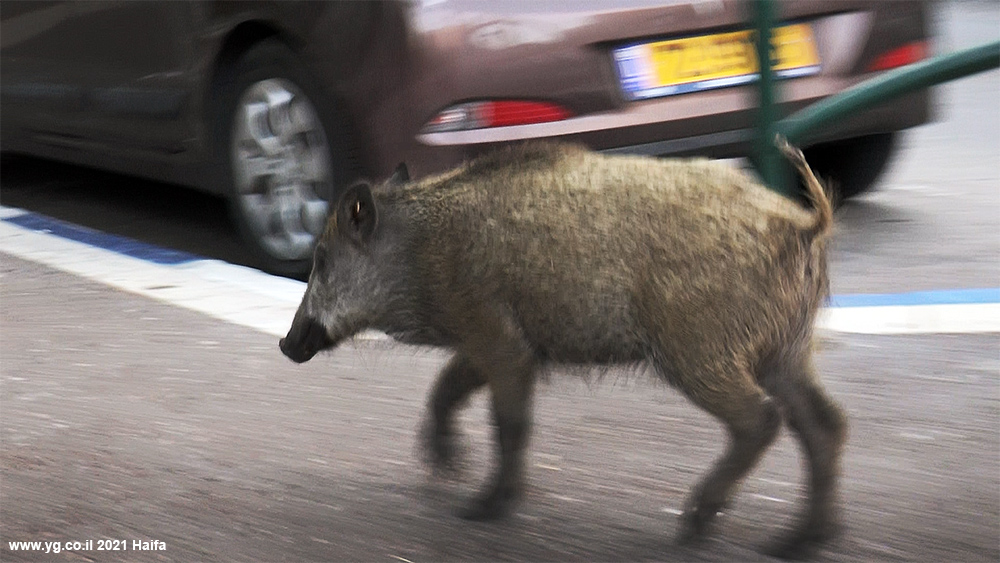 חזיר בר צעיר רץ במרכז הכרמל. בצילום, תנועת המצלמה מלווה אותו, ולכן רק חלק ממנו (הראש בעיקר) חד, והיתר הרבה פחות חד. כפות הרגליים של החזיר יצאו יותר מטושטשות מפני שהן בתנועה מהירה יותר מגופו ומראשו. הרקע "מעט מרוח" בטשטוש, מה שמאפיין את ליווי התנועה.
